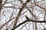 | 相方のリクエストで連雀を見に行ってきました。例年のポイントかと思ったら別の場所でした。着いた時には移動してしまってギャラリーも手持無沙汰。諦めて帰ろうかと移動していたら高い木のてっぺんに10羽ほどの群れ。写真は証拠程度でしたが、相方は満足のようでした。午後から所要があり1時間半ほどで引き上げましたが、思わぬところでキクイタダキを見られて当方も満足。 |
